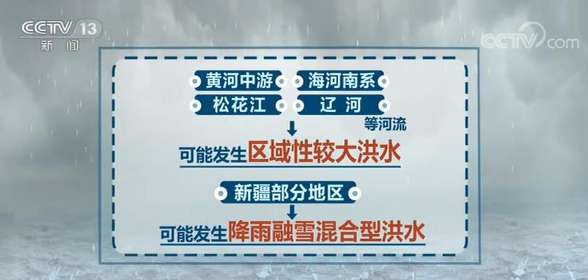 另據(jù)氣象部門預(yù)測分析,今年7月至8月,全國降雨總體偏多,南北方均有多雨區(qū),以北方雨帶為主,其中山西、河北、山東、黑龍江、內(nèi)蒙古、新疆等地部分地區(qū)降雨較常年同期可能偏多3—5成。受此影響,黃河中游、海河南系、松花江、遼河等河流可能發(fā)生區(qū)域性較大洪水,新疆部分地區(qū)可能發(fā)生降雨融雪混合型洪水。