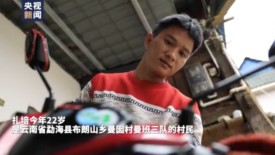 扎培今年22歲,是云南省勐?h布朗山鄉(xiāng)曼囡村曼班三隊(duì)的村民。扎培在村里第一個(gè)學(xué)會(huì)網(wǎng)購(gòu),他告訴記者:“網(wǎng)購(gòu)很方便,一般5~6天就能收到快遞?爝f公司(把快遞)送到村委會(huì),我就騎著摩托下去拿。”