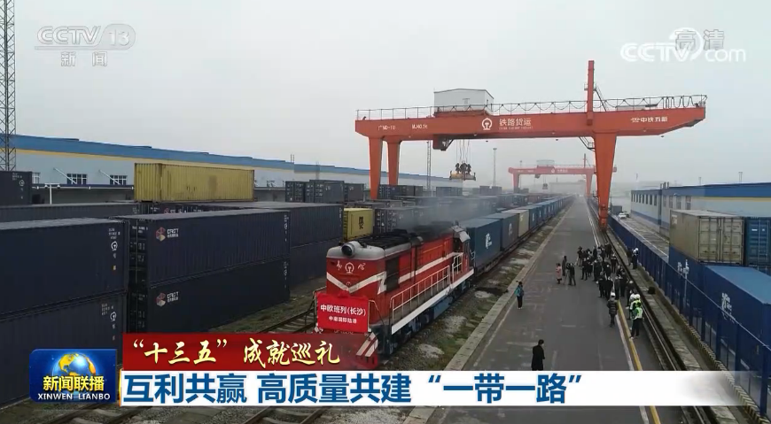 在湖南長(zhǎng)沙,滿載零部件的中歐班列,即將開往白俄羅斯明斯克的中白工業(yè)園。在安徽合肥,今年第500列中歐班列,滿載著為歐洲訂制的白色家電鳴笛啟程,開往11000公里外的德國(guó)杜伊斯堡。