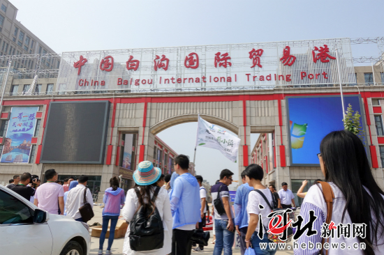 圖為采訪團在白溝國際貿(mào)易港參觀。攝影:趙杰