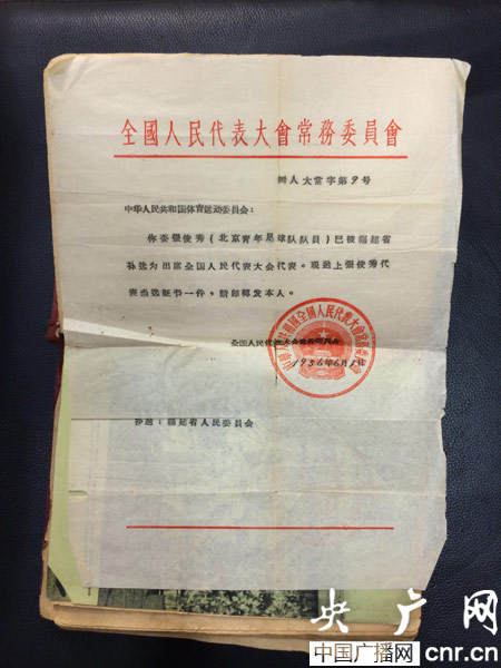 ▲一屆全國人代會中唯一的運(yùn)動員代表