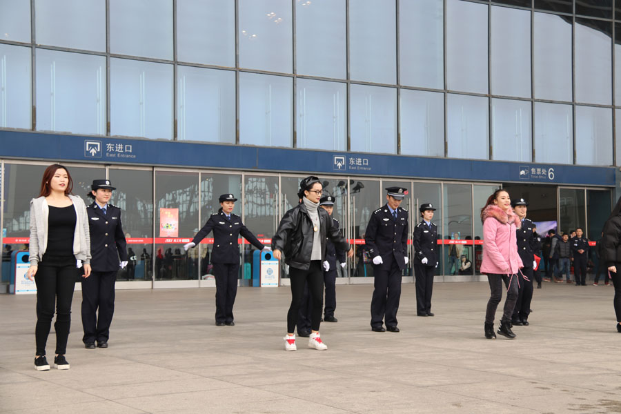 在近5分鐘的表演里,15名90后年輕鐵警將財(cái)物防盜、安全乘車、平安出行等多個(gè)方面的溫馨提示融入其中,受到廣大旅客的稱贊。