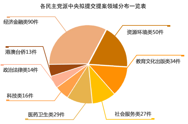 據(jù)初步了解,目前民革、民盟、民建、民進(jìn)、農(nóng)工黨、致公黨、九三學(xué)社、臺(tái)盟今年擬向全國(guó)政協(xié)提交提案共計(jì)334件(其中,黨派中央提案共299件,九三學(xué)社界別提案35件),涉及經(jīng)濟(jì)金融、資源環(huán)境、教育文化、醫(yī)藥衛(wèi)生、社會(huì)服務(wù)、科學(xué)技術(shù)等各領(lǐng)域。