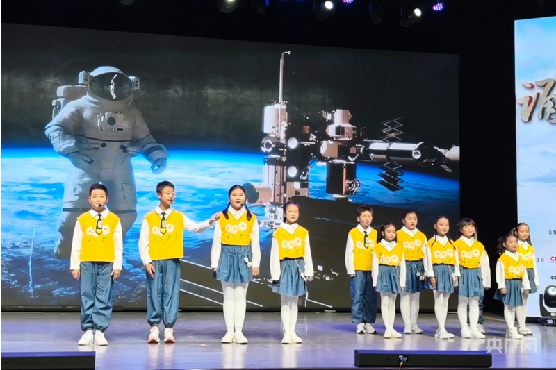 播創(chuàng)藝嘉少兒團(tuán)隊朗誦的《詩詞里的航天夢》(央廣網(wǎng)記者 張海東 攝)