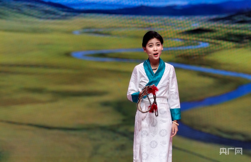 索南達(dá)央朗誦《水中的烏爾朵》(央廣網(wǎng)記者 張海東 攝)