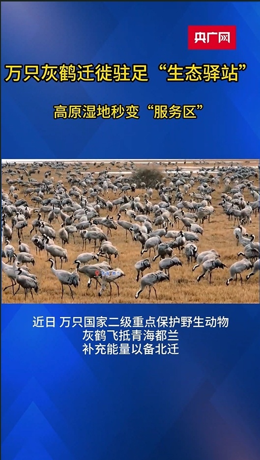 萬只灰鶴遷徙駐足“生態(tài)驛站” 高原濕地秒變“服務區(qū)”