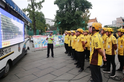 同一天,成都市交管三分局民警,對餓了么外賣平臺近百名外賣小哥分別從城市道路交通安全法規(guī),城市道路交通安全事故的處理,城市道路交通安全意識的培養(yǎng)及文明交通行為倡導等幾方面,給近百名送餐騎手和管理人員“漲姿勢”。
