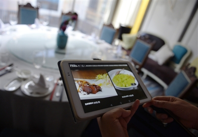 第二天晚上,劉先生一行十余人來到餐廳二樓包廂用餐。服務(wù)員拿來了一個(gè)IPAD,說直接在上面的菜單點(diǎn)餐。開始點(diǎn)餐時(shí),劉先生卻發(fā)現(xiàn)IPAD上的菜單和以往大堂的菜單不一樣!安似坊具是那些。但問題主要是價(jià)格。大部分菜品都比外面大堂的菜單上貴,大概貴了十元到四五十元不等!