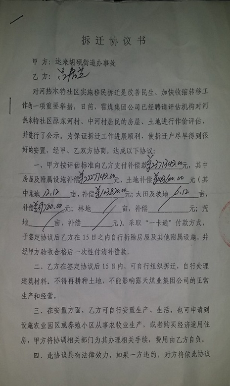 (2012年達來胡碩街道辦事處與村民簽訂的協(xié)議被政府單方否定)