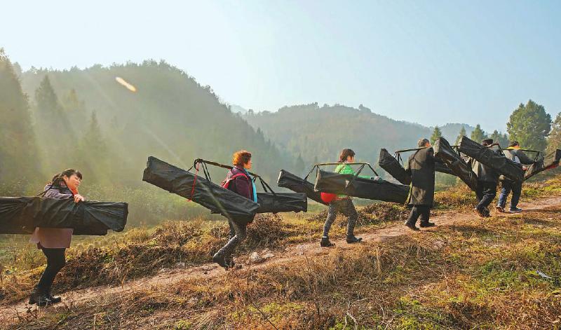新年伊始,南江縣團結(jié)鄉(xiāng)回龍村“暖意融融”。近日,“扁擔學(xué)!钡牧x務(wù)宣傳隊隊員們用扁擔挑起宣傳展板、演出道具,徒步走進該村,用群眾喜聞樂見的快板書、三句半、方言小品等形式,宣傳黨的十九大精神。