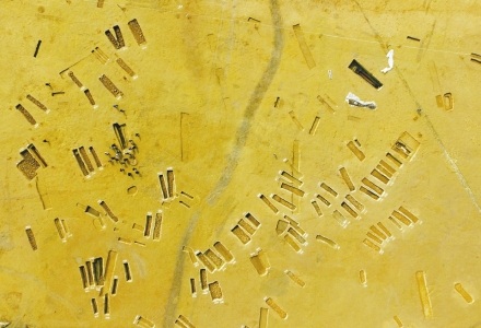 3月7日,晴。成都市青白江區(qū)大彎街道雙元村,近2個(gè)足球場(chǎng)大小的“工地”上,排列著180個(gè)長(zhǎng)方形的墓坑。除了少量東西向分布外,其余大部分都為南北朝向。從墓群上空俯視,密集的黑色墓坑安靜陳列在黃土之上,像許多欲說(shuō)還休的嘴巴。這是近200位古蜀人的最后歸宿。
