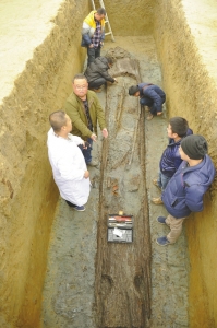 “過(guò)去成都周邊地區(qū)發(fā)現(xiàn)的船棺葬多為戰(zhàn)國(guó)時(shí)期,春秋時(shí)期極少,此次發(fā)掘填補(bǔ)了這一空白!背啥嘉奈锟脊叛芯克芯繂T劉雨茂等專家認(rèn)為,從金沙遺址、商業(yè)街船棺葬、青白江雙元村春秋戰(zhàn)國(guó)墓群,到前不久剛公布的蒲江戰(zhàn)國(guó)船棺墓群,商周時(shí)期至戰(zhàn)國(guó)晚期的古蜀文明已形成序列,這為研究古代巴蜀地區(qū)的歷史文化、生活喪葬習(xí)俗,及春秋戰(zhàn)國(guó)時(shí)期諸侯國(guó)間的交融等情況,提供了重要研究資料。