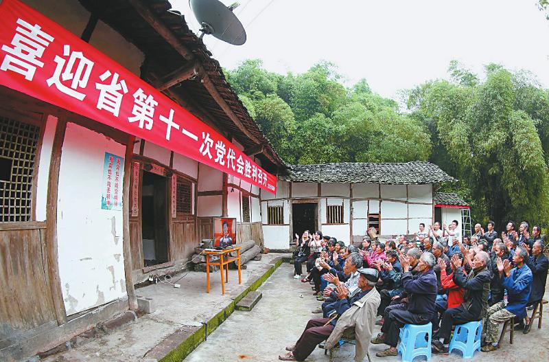 5月24日上午,阿壩州黑水縣麻窩鄉(xiāng)木日窩村,村支部書記羅讓和全村8名黨員通過電視收看省第十一次黨代會開幕盛況。