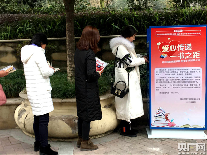 央廣網(wǎng)成都12月27日消息(記者劉濤、通訊員王永強(qiáng))“我覺得這是件很有意義的事,通過捐獻(xiàn)閑置的書籍就能夠幫助別人,我內(nèi)心感到很高興。希望有更多的市民朋友參與到這個活動中來,共同傳遞愛心,把我們眉山建設(shè)得更加美麗和溫暖!27日,在四川眉山中心城區(qū)一小區(qū)內(nèi),小區(qū)居民黃女士將家中看過的閑置書籍投入“愛心書籍捐贈箱”時高興的說到。