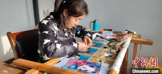 1月17日,位于成都高新區(qū)的蜀菁館工作室內(nèi),幾位繡娘正在刺繡。不大的工作室里,擺滿了蜀錦、蜀繡作品,其中多以大熊貓為主,均通過數(shù)字圖片處理技術(shù)設(shè)計(jì),這也是“AI新錦繡”與傳統(tǒng)蜀繡最大的區(qū)別。