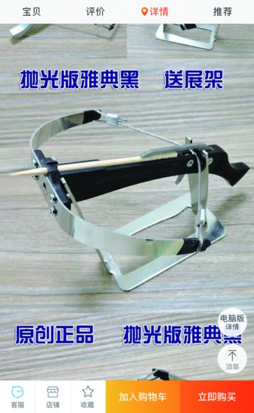 不過記者更換關(guān)鍵詞搜索商品發(fā)現(xiàn),仍有個(gè)別商家在出售“牙簽弩”,但是將貨物的名字改為“呀簽怒迷你怒”或“迷你十字弓”等,且價(jià)格在五十元到幾百元不等,看起來與之前十幾元的“牙簽弩”外形用料有所不同,但比較相似。