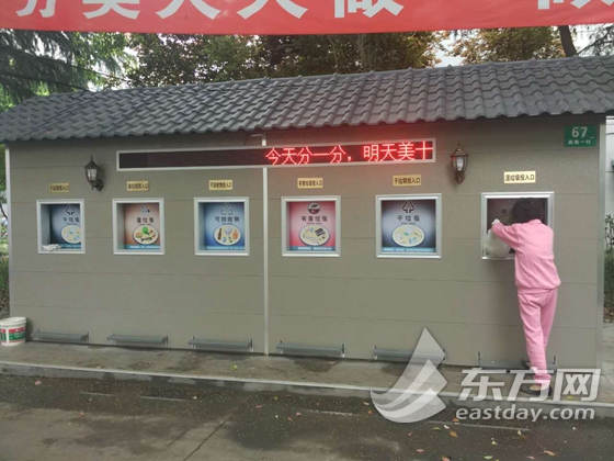 5月2日,東方網(wǎng)記者來到淞南一村,在70號樓前記者看到有一個分類垃圾箱,總共有6個垃圾投放口,分別是兩個濕垃圾投放口,兩個干垃圾投放口以及可回收垃圾投放口和有害垃圾投放口。當進入到垃圾箱的感應范圍內(nèi),垃圾箱還會自動播放語音“感謝您對垃圾分類做出貢獻”。69號樓的梁阿姨正在往里面投放垃圾,她將濕垃圾和干垃圾分別投放到了不同的垃圾投放口!斑@個分類垃圾箱建好有一個多月了,垃圾箱外邊還有感應燈,天一黑,燈就亮了。一般是早上九點和下午5點左右扔垃圾的人比較多,而且垃圾分類還可以積分兌獎品。雖然這個時間段扔垃圾沒有積分,但是逐漸養(yǎng)成了將垃圾分類投放的習慣。”據(jù)東方網(wǎng)記者了解,這個分類垃圾箱還配備了兩名垃圾分類專管員,據(jù)專管員邵生產(chǎn)介紹,每天都會定時清理里面的垃圾,干濕垃圾分好類后,就會被車輛拉去不同垃圾處理站處理。淞南一村小區(qū)有7個垃圾箱,濕垃圾基本上每天一車就能拉完。