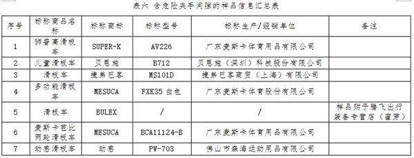 滑板車上活動(dòng)最多的部件主要是車輪,車輪與車身支架之間均有一定間隙,這類間隙若與兒童手指粗細(xì)相當(dāng),則可能存在夾傷風(fēng)險(xiǎn)。標(biāo)準(zhǔn)要求,兒童滑板車活動(dòng)部件的可觸及間隙不應(yīng)在5-12mm之間。測(cè)試結(jié)果顯示,有7件樣品車輪周圍間隙在5-12mm之間(見(jiàn)表六)。
