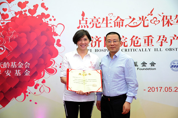 上海市宋慶齡基金會(huì)代秘書長(zhǎng)賈勇為陳辰授牌“母嬰平安愛心大使”