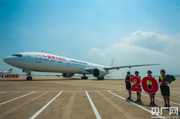 央廣網(wǎng)上海7月23日消息(記者吳善陽(yáng))一架編號(hào)為B-7882的波音B777-300ER飛機(jī)今天從西雅圖飛抵上海浦東機(jī)場(chǎng),飛機(jī)經(jīng)過(guò)“水門”儀式的洗禮,正式加盟東航650余架機(jī)隊(duì)的“大家庭”,標(biāo)志著東航于2012年4月采購(gòu)的20架波音777-300ER全部交付完畢。20架“集結(jié)”完畢之后將發(fā)揮出更佳的規(guī);瘍(yōu)勢(shì),更好地服務(wù)于“一帶一路”建設(shè),服務(wù)于上海樞紐建設(shè),為全球乘客帶來(lái)非同一般的空中旅行體驗(yàn)。