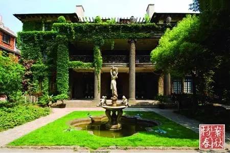 宅前庭院的中軸線上置一座由漢白玉制成的普緒赫雕像噴泉,成為整個庭園的靈魂。這座噴水池,是整個建筑的精髓所在,栩栩如生的女子雕像與二樓露臺遙遙相望,所有知道雕像來歷和故事的人,都會對這巧妙的設(shè)計背后的寓意,心領(lǐng)神會。