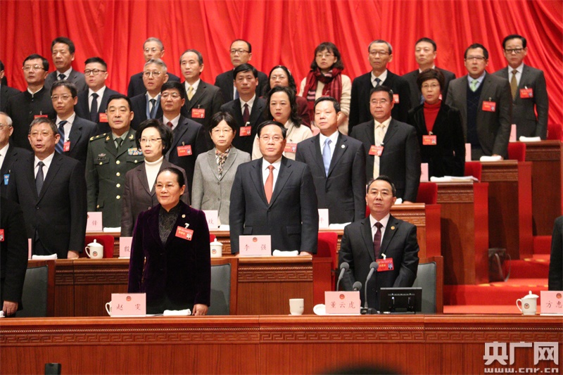 上午9時,董云虎宣布大會開幕,全體起立,奏唱國歌。