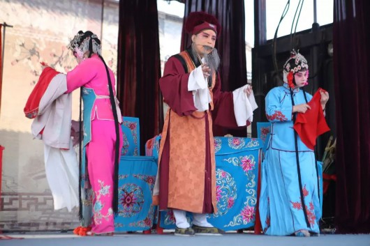 △近日,由山東濱州當(dāng)?shù)貐蝿F(tuán)等演出團(tuán)體組成的文化惠民演出隊(duì)在魏集鎮(zhèn)魏氏莊園北廣場搭臺開唱。