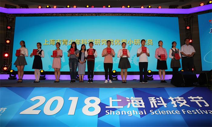嘉賓為上海市青少年科學研究院優(yōu)秀小研究員頒獎(陸嘉輝 攝)