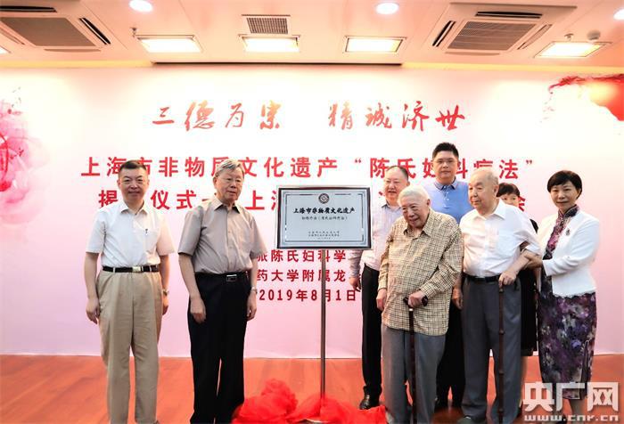 央廣網(wǎng)上海8月3日消息(記者楊靜 通訊員陳豪)上海市非物質(zhì)文化遺產(chǎn)“陳氏婦科療法”揭牌儀式暨海派陳氏婦科學(xué)術(shù)交流會(huì)日前在上海中醫(yī)藥大學(xué)附屬龍華醫(yī)院召開(kāi),陳氏婦科第四代代表性傳承人陳惠林教授、王大增教授、各非遺項(xiàng)目代表性傳承人施杞教授和上海中醫(yī)藥大學(xué)副校長(zhǎng)胡鴻毅副校長(zhǎng)共同為第六批上海市非物質(zhì)文化遺產(chǎn)擴(kuò)展項(xiàng)目“陳氏婦科療法”揭牌。