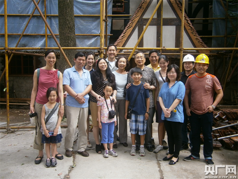 劉素華女士與邵修繕三女兒一家在舊居修繕現(xiàn)場合影(央廣網(wǎng)發(fā) 主辦者供圖)