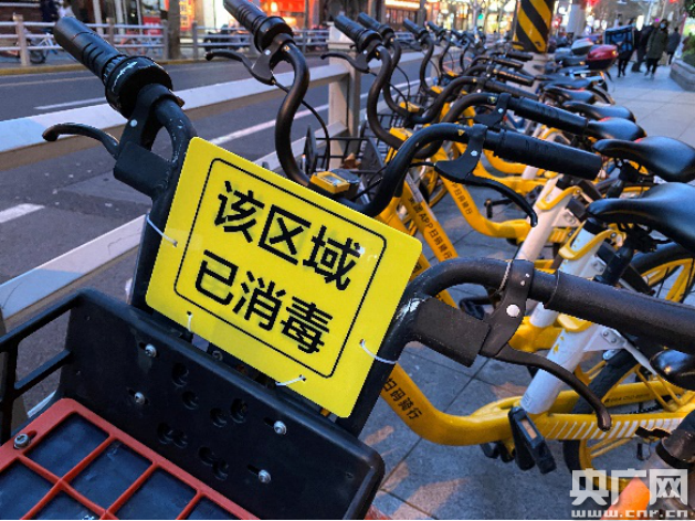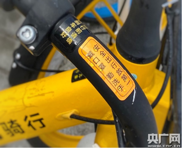 上海街頭的美團(tuán)單車在已消毒區(qū)域的車上掛著明顯標(biāo)志(央廣網(wǎng)發(fā) 美團(tuán)單車供圖)