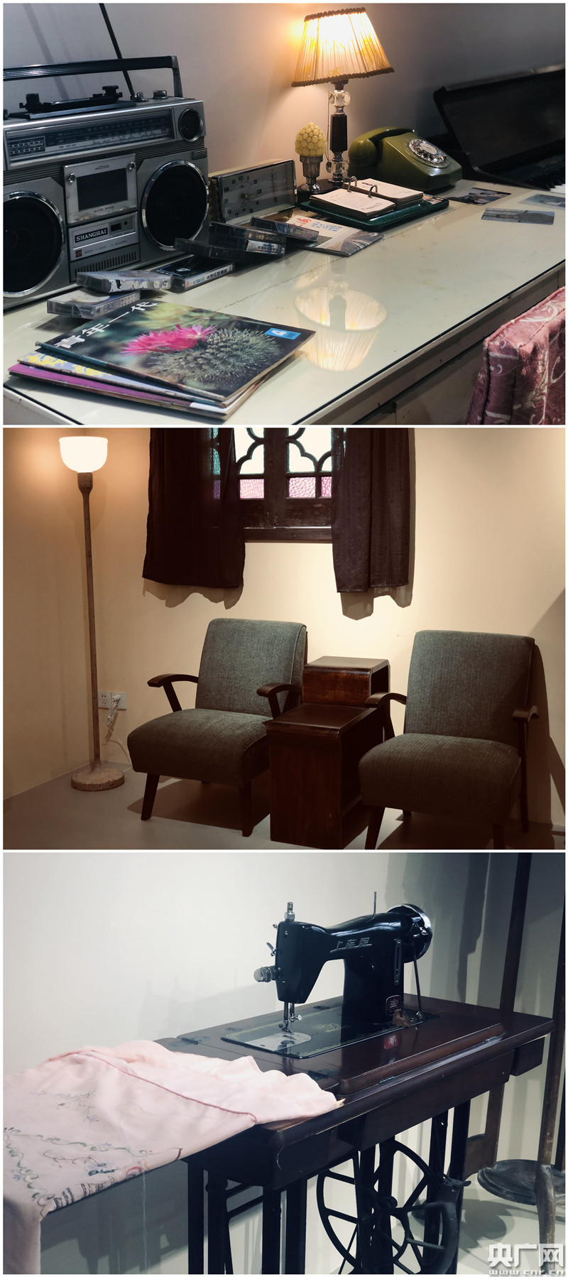 記者在現(xiàn)場(chǎng)看到,三個(gè)客廳里的布置與物件均有出處,有跡可循。收音機(jī)、熱水瓶、電風(fēng)扇、臺(tái)燈……雖然只是一些日常的實(shí)用物件,卻依附著一個(gè)個(gè)普通上海人的成長(zhǎng)經(jīng)歷,濃縮了一組組家庭的情感故事。