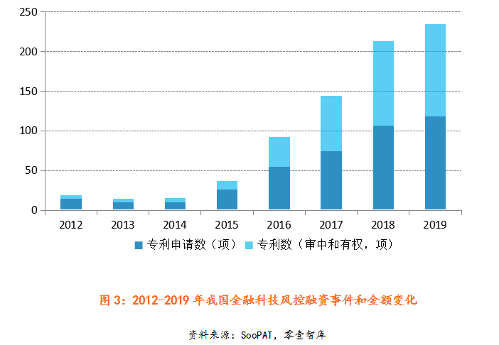 在專利方面,根據(jù)SooPAT數(shù)據(jù)顯示,自2014年開始,國內(nèi)與金融科技風(fēng)控相關(guān)的專利申請持續(xù)上升。2014年金融科技風(fēng)控專利申請數(shù)為10項,2019年申請數(shù)達(dá)到118項,5年間專利申請數(shù)年復(fù)合增長率達(dá)63.82%。其中,在2012年至2019年間,阿里巴巴及支付寶共申請27項金融科技風(fēng)控專利,涉及支付、投資決策、賬戶安全、信貸等場景應(yīng)用,是申請專利最多的企業(yè)。
