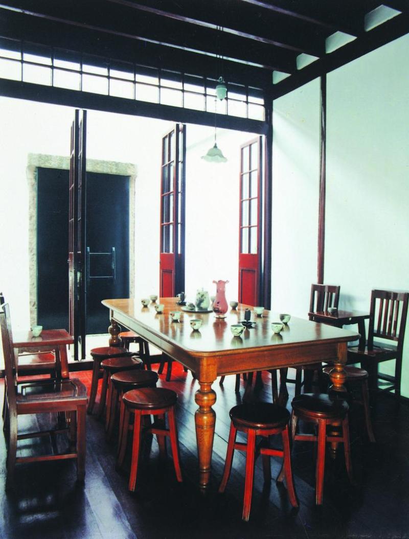 這是一處典型的上海石庫門建筑,青墻紅磚交錯(cuò),烏黑木門配一對(duì)銅環(huán),院內(nèi)是一上一下的大開間。李漢俊把一樓的客堂間布置成會(huì)場。一個(gè)長方形餐桌,十幾把圓形椅凳,15名年輕人、包括兩個(gè)高鼻梁老外,帶著興奮心情齊聚于此。