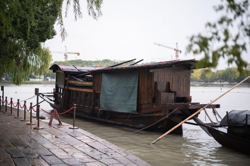 走在嘉興南湖邊,湖面波光瀲滟。靠近湖心島處,一艘復(fù)建于上世紀(jì)50年代的單夾弄中型畫舫靜靜停泊著。