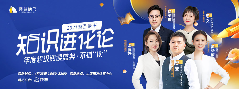 央廣網(wǎng)上海4月12日消息(記者韓曉余)4月23日世界讀書日,“知識進(jìn)化論·不孤‘讀’”線下閱讀盛典將在上海舉辦。這是繼2019年的“知識進(jìn)化論”主題演講和2020年的“2020當(dāng)我們一起讀書-知識TALK秀直播周”之后,樊登讀書在世界讀書日推出的第三次年度閱讀活動(dòng)。
