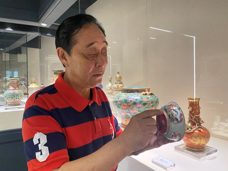 陶瓷評鑒專家丘小君先生在品鑒瓷器