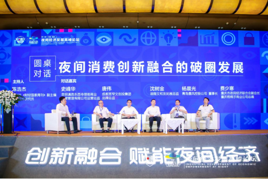 青島墨風控股公司董事長楊晨光,湖南文和友拓展總監(jiān)沈樹金,重慶梧桐子商業(yè)公司總裁費少寒,成都寬窄文創(chuàng)投集團副總經理、成都文旅寬窄巷子公司副總經理馬慧,昆明滇邑東西寺塔街商業(yè)運營管理有限公司董事長黃駿,圍繞“夜間消費 創(chuàng)新融合的破圈發(fā)展”主題,以演講和對話的形式開展了圓桌對話。