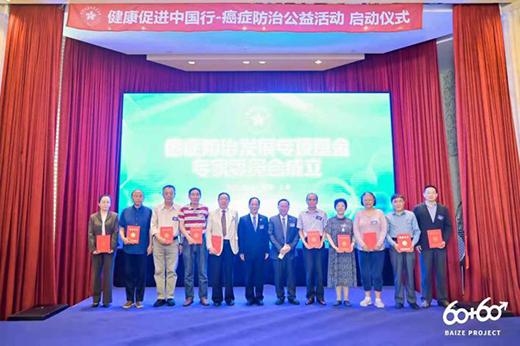 中國健康促進(jìn)基金會常務(wù)副理事長兼秘書長徐卸古、中國健康促進(jìn)基金會副秘書長兼癌癥防治發(fā)展專項(xiàng)基金管理委員會副主任委員席立鎖、中國健康促進(jìn)基金會癌癥防治發(fā)展專項(xiàng)基金管理委員會主任委員崔寶善、中國健康促進(jìn)基金會癌癥防治發(fā)展專項(xiàng)基金專家委員會副主任委員張景紅、廣東白澤健康科技有限公司董事長白宗科、上海市品牌授權(quán)經(jīng)營企業(yè)協(xié)會創(chuàng)始人楊云、上海市癌癥康復(fù)俱樂部袁正平共同啟動“健康促進(jìn)中國行-癌癥防治公益活動”。