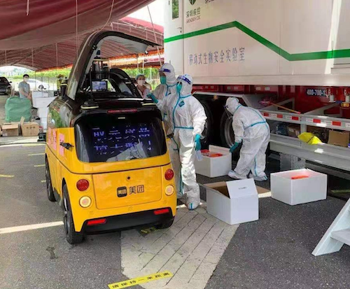 該車隊于6月5日凌晨出發(fā),連夜趕赴抗疫一線。首批車輛于6月6日傍晚正式進入南沙區(qū)執(zhí)行封閉管理的嘉安花園小區(qū),為正在進行隔離的約1800戶居民提供生活物資的配送服務(wù)。此外,無人車還配合美團買菜、美團優(yōu)選,開展疫情風(fēng)險區(qū)生鮮果蔬的配送工作。