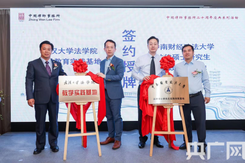 當天,武漢大學法學院法學教育實踐基地、中南財經政法大學法律碩士研究生實踐創(chuàng)新基地同時簽約授牌落戶中聞律師事務所,校所雙方將在人才聯(lián)合培養(yǎng)、教育教學等領域開展合作。與會專家學者還圍繞加強長江經濟帶不良資產法律服務、促進長江經濟帶高質量發(fā)展展開探討。