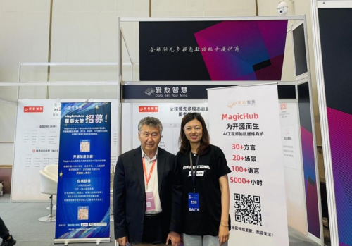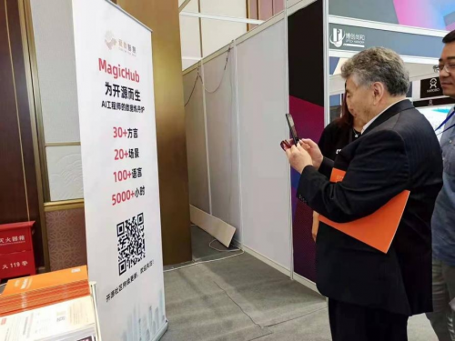 吾守爾·斯拉木蒞臨愛數(shù)智慧展臺,了解愛數(shù)智慧核心技術(shù)及產(chǎn)品,并對MagicHub.io開源社區(qū)非常感興趣,吾守爾鼓勵愛數(shù)智慧在多語種智能化研究和應(yīng)用上繼續(xù)努力,實(shí)現(xiàn)無縫交流。