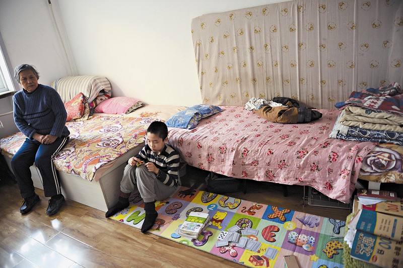客廳角落里,小浩博正在做的是三年級的語文練習題,字跡很工整。小浩博有點內向,但當記者問起想不想讀書時,他說:“我就想上學”。當聊到他的父母親時,小浩博低下了頭。問他有沒有朋友,他露出了笑容:“我有好幾個好朋友,都是我們院子里的,經常一起玩過家家……”“剛開始還能輔導他一些簡單的題,到后來學東西,都是靠他叔叔家的女兒——比他小3個月的妹妹,周末時來輔導一下,大多靠自學。”老人神色黯然,“別看這娃不愛說話,平時還挺調皮,有幾次和小朋友打鬧,還被人家家長找上門。還有一次,孩子出去玩到天黑都不回家,可把我給急壞了!弊阅侵,奶奶怕他出去惹事,自己出門時就把他鎖在家里,她認為這樣比較安全。