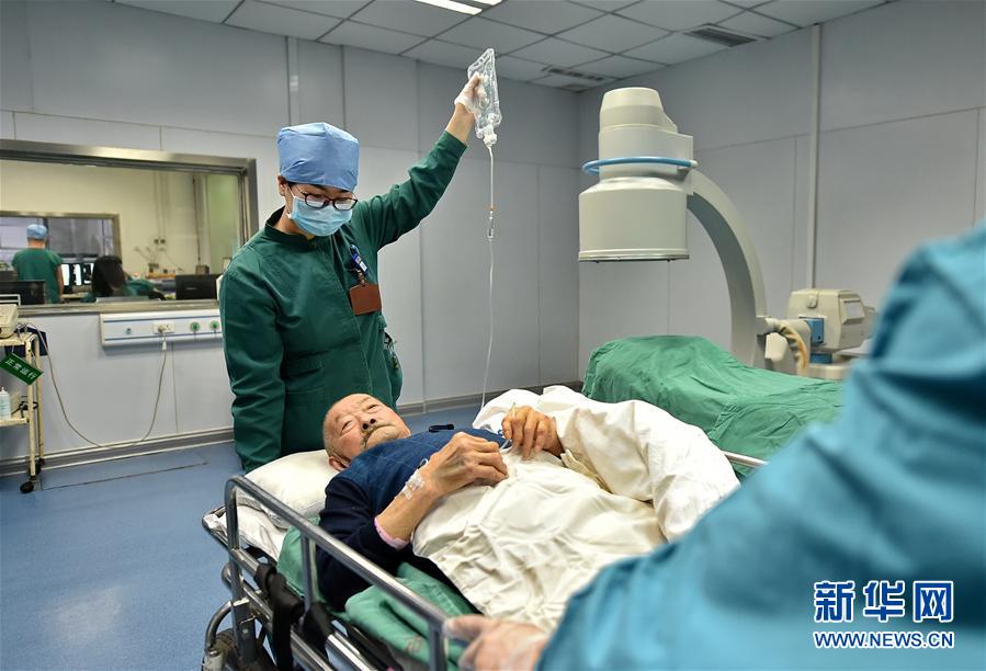 5月11日,山西省太原市中心醫(yī)院心內(nèi)科導(dǎo)管室護(hù)士張娣在照顧病患。 -