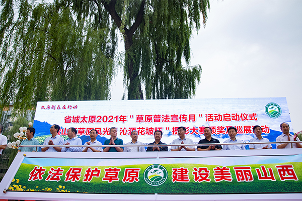 央廣網(wǎng)太原6月16日消息(牛黎)依法保護(hù)草原,建設(shè)美麗山西。6月16日上午,在山西省太原西海子公園,山西省“草原普法月”宣傳活動暨首屆山西草原風(fēng)光“沁源花坡杯”攝影大賽頒獎及巡展活動舉行啟動儀式,山西省政協(xié)人口資源環(huán)境委員會、省直工委、山西省司法廳、山西省攝影家協(xié)會等有關(guān)領(lǐng)導(dǎo)參加本次活動。
