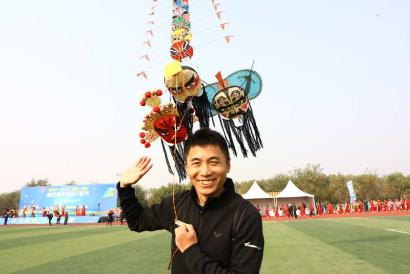 比賽現場,各類風箏五彩繽紛,活力炫動,時而轉換方向、時而變換動作、時而擺出造型,吸引了廣大風箏愛好者和市民駐足觀看。來自沈陽風箏協(xié)會的選手王中生接受采訪時說:“今天是我連續(xù)第三年參加咸陽風箏節(jié)比賽,感受到了濃厚的賽事氛圍。這次我?guī)Я?0只形狀各異的風箏,現在放飛在空中的‘鯨魚’風箏,算是比較大的一只,長16米,用料面積300平方米,將它完全放飛需要四五個人一起合作!