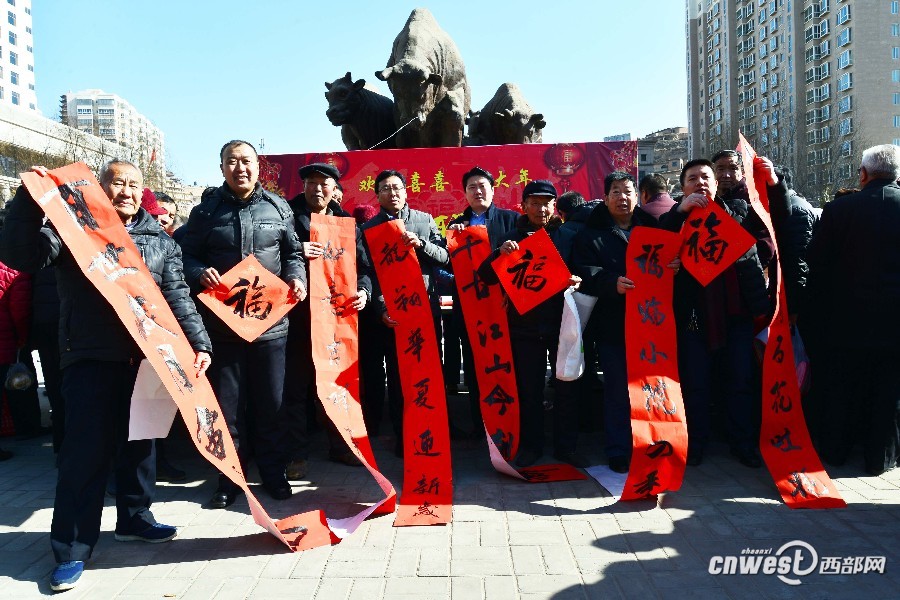 據(jù)悉,橫山縣文聯(lián)與書法家協(xié)會已經(jīng)連續(xù)八年臨年臘月走上街頭義務向市民書寫贈送春聯(lián)與“!弊郑@一活動既滿足了市民對傳統(tǒng)春聯(lián)的需求,又促進了書法這一傳承文化在民間的傳播與發(fā)揚。
