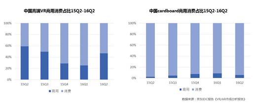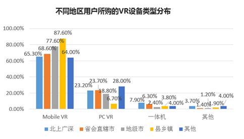 數(shù)據(jù)近8成個人用戶以購買Mobile VR為主,價格區(qū)間在200元左右,大部分為近半年所購。中高端VR設(shè)備大多數(shù)應(yīng)用于商用市場,主要以線下體驗店為主[x]。