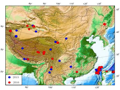 2015年1月至2016年12月12日全國(guó)MS≥5.0地震震中分布圖