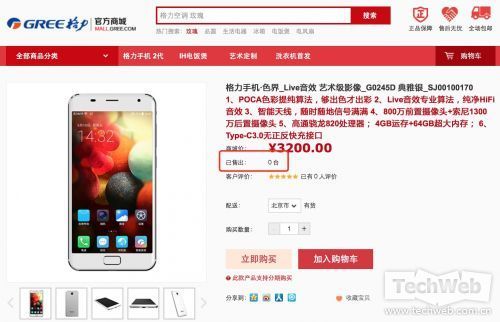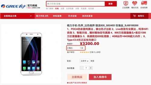 該機(jī)售價3200元,這價位在目前旗艦手機(jī)市場已經(jīng)沒什么優(yōu)勢了,通過格力官網(wǎng)“已售出”累計(jì)來看,總共僅只賣出了5臺(其中奢華金賣了4臺,玫瑰金1臺,雅典銀0臺),引起了眾多網(wǎng)友猜測這款手機(jī)竟然會有人賣?購買的人是那種類型的人呢?